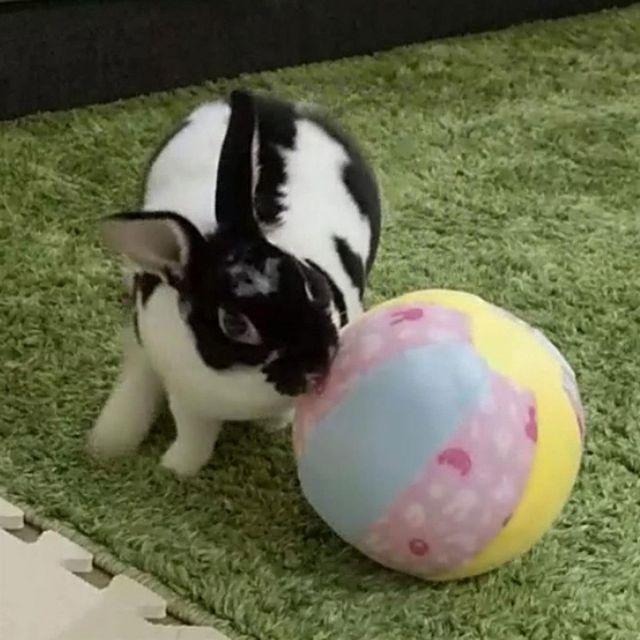 商品紹介●ぬいぐるみのように柔らかく、よく転がるから飽きずに遊べる、大きなボールのおもちゃ。●お鼻でツンツンしたり、ほっぺでコロコロしたり、乗っかったり、運動不足の解消にも役立つアイテム●小さなボールでは物足りなかったウサちゃんはもちろん、小さなウサちゃんが大きなボールで遊ぶ姿もかわいい。●丸いフォルムは新しい仲間ができたように遊ぶ。●手にもって動かしてみたり、うさちゃんと一緒にコミュニケーションもできるおもちゃ。使用方法遊び方●においを嗅がせたり、足元で転がしたりして、興味を持たせてから遊ばせます。