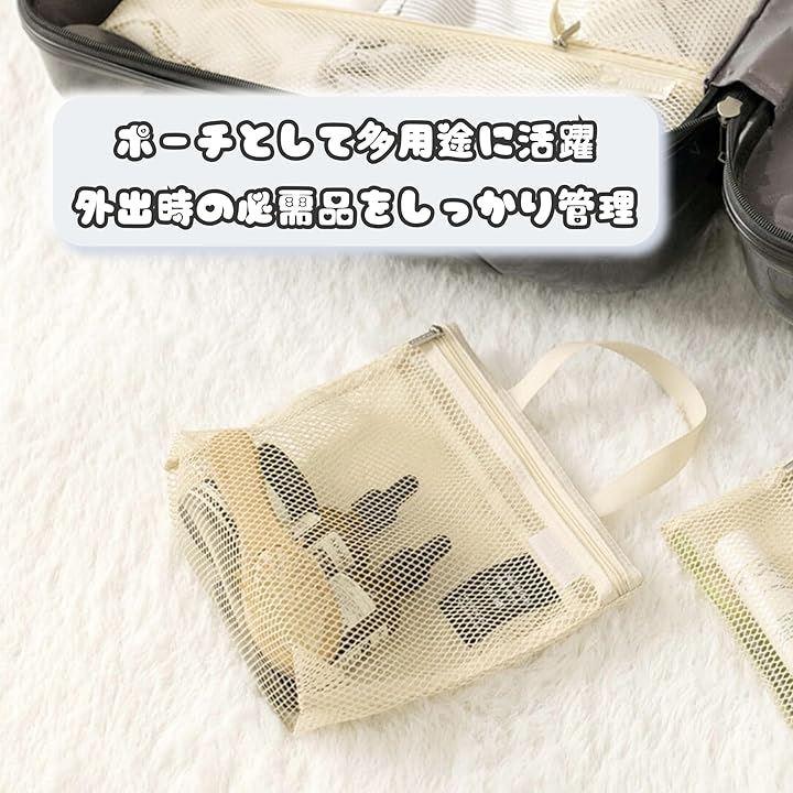 「通気性抜群」メッシュ素材を使用しているため、湿気を逃がしやすく、濡れたタオルや水着を入れても安心です。