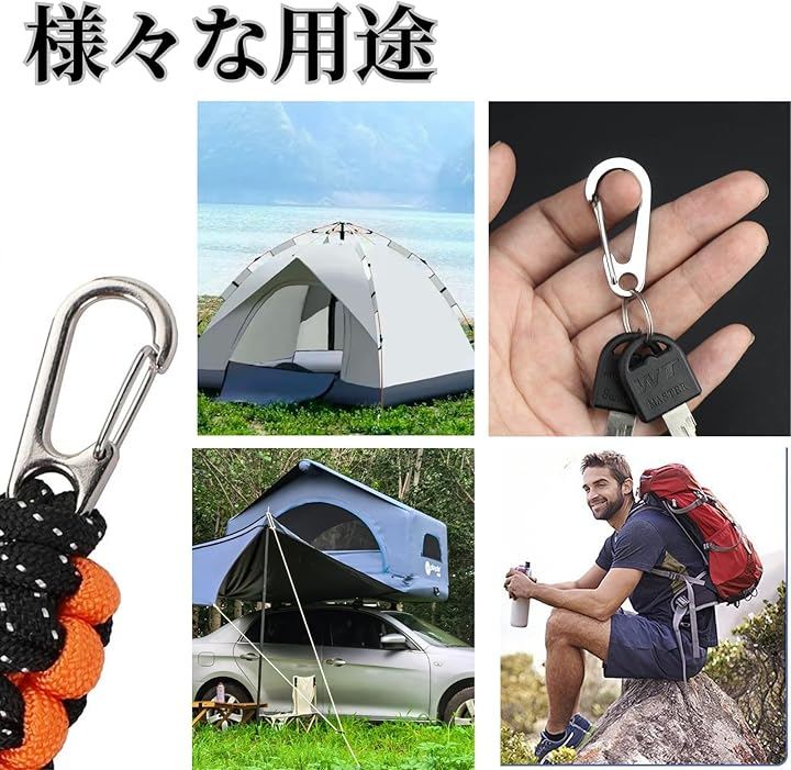 幅広い用途に対応 バックパック、キーホルダー、釣具、キャンプ用品、ペット用リードなど、多目的に活躍する便利アイテムです。