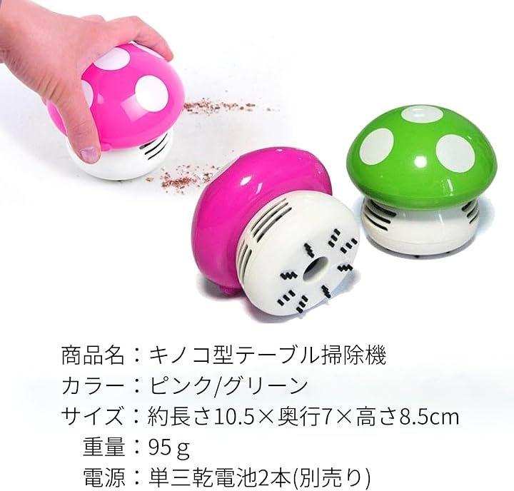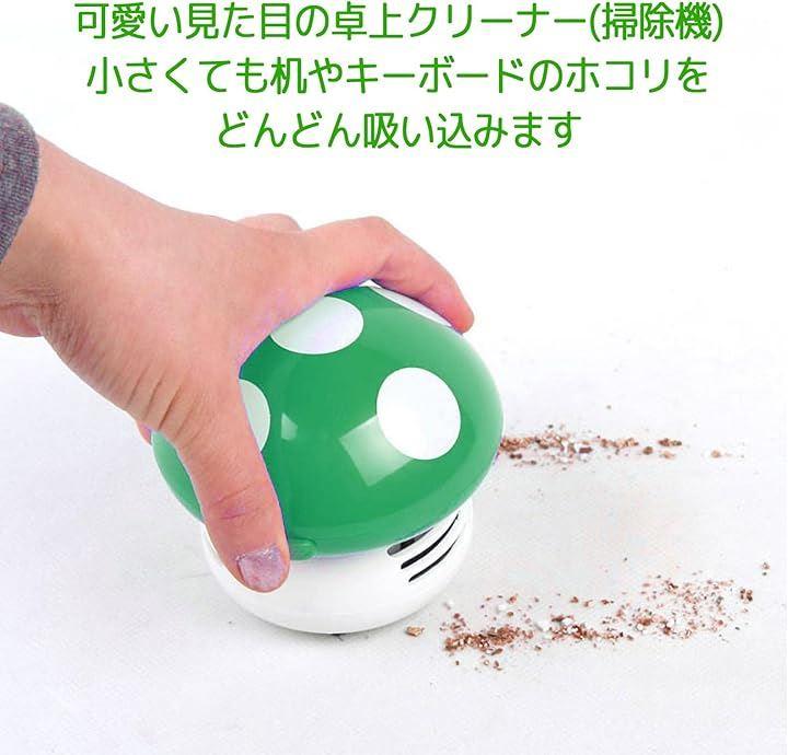 キノコ型卓上ミニクリーナーは、デスク周り、テーブル、机、PC周りのお掃除に便利な手のひらサイズのコードレス掃除機。