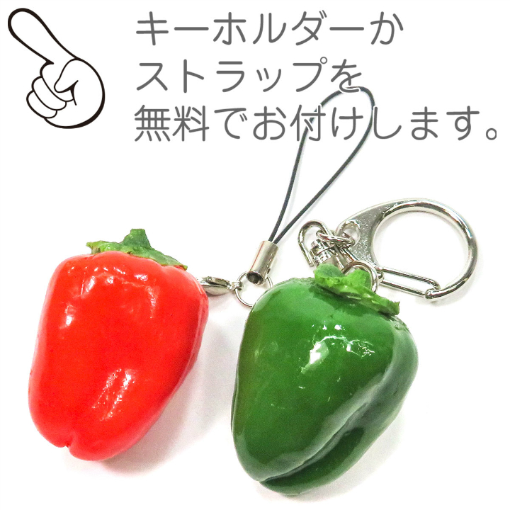 つややかで色鮮やかなミニピーマンの食品サンプルアクセサリーです。大きさは4cmほどのミニサイズです。