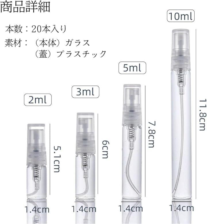 「シーンを選ばない便利な20本セット」香水やアルコール、化粧水の小分けに最適なガラス製スプレーボトル20本セット。