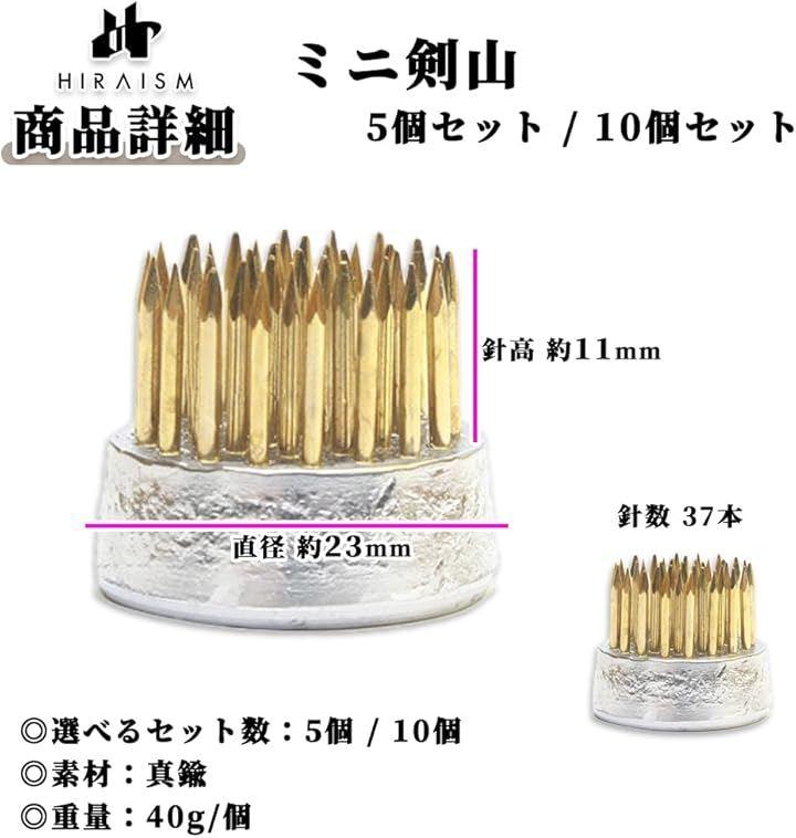 「商品内容」ミニ剣山:5個 / 10個 形:丸型 直径:23mm 針高:11mm 針数;37本 重量:40g / 個 素材:真鍮