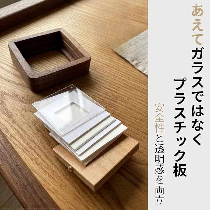 ガラスに劣らない透明度がウォールナットの深い色味を邪魔せず、中の写真をクリアに保護。