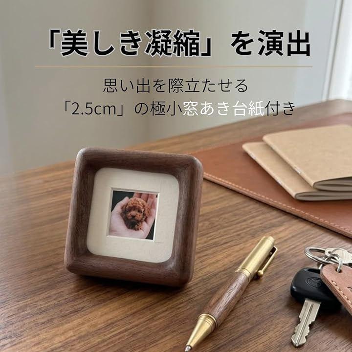 あえて余白を広く持たせることで、お気に入りの写真がギャラリーの作品のように引き立ち、手のひらサイズながらも計算された「美しき凝縮」を演出します。