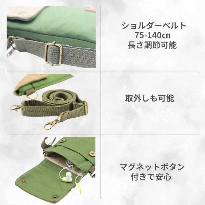 「材質」帆布・デニム素材 「サイズ」幅12cm 高さ19cm 厚さ2.0cm ショルダーベルト調節可能75~140cm「重量」約100g *多少の誤差がある場合がございますので、ご了承ください。