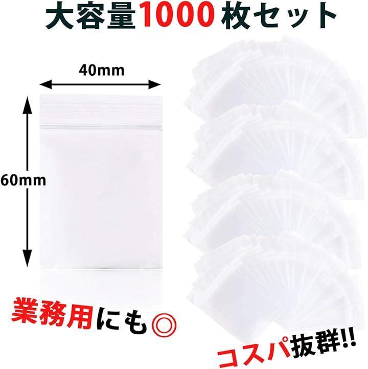 「商品内容」チャック付きポリ袋:1000枚 サイズ:4x6cm 厚さ:0.12mm カラー:透明 材質:PE(ポリエチレン) 備考:密封性、防水性