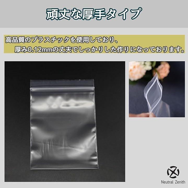 「密封チャック付き」 厚さ0.12mmの高品質プラスチックを採用したチャック付きポリ袋。