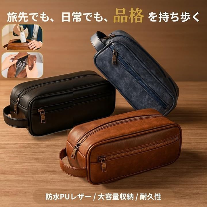 高品質なPUレザーを使用したミニセカンドバッグ&トラベルポーチです。