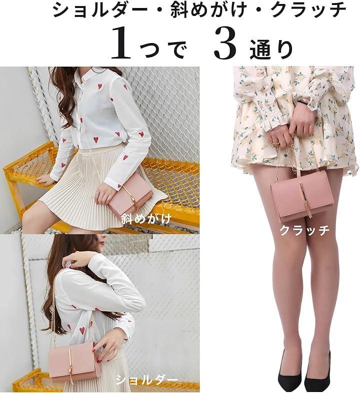 [3WAY仕様](1)斜めがけバック(2)肩かけバック、長さを変えてハンドバッグにも(3)チェーンを外してクラッチ持ち