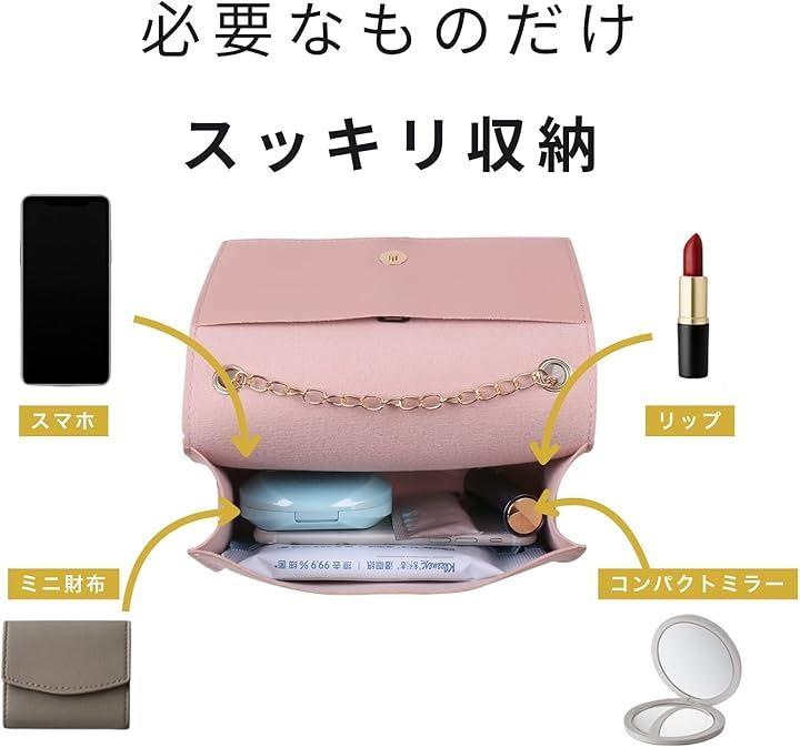 お財布、スマホ、リップ、ハンカチなど、お出かけの必需品が収納できる使いやすい大きさです。