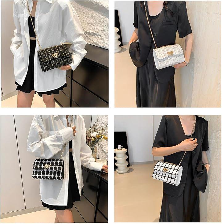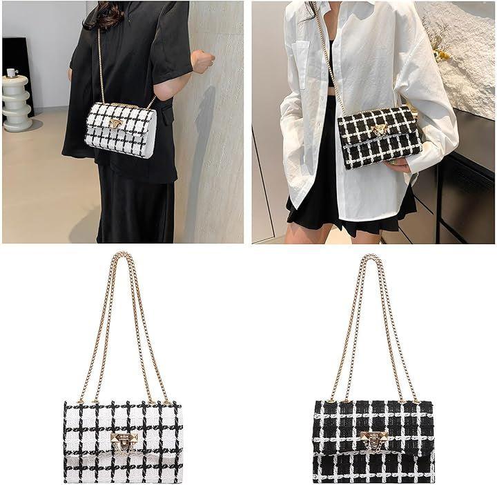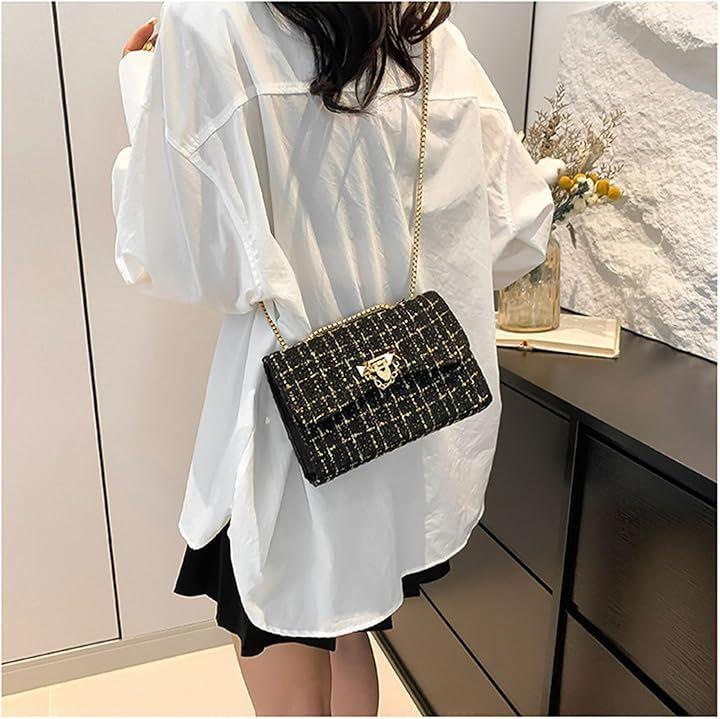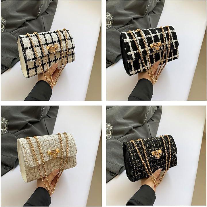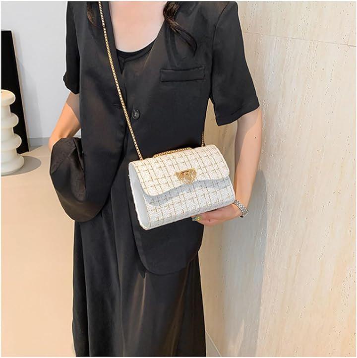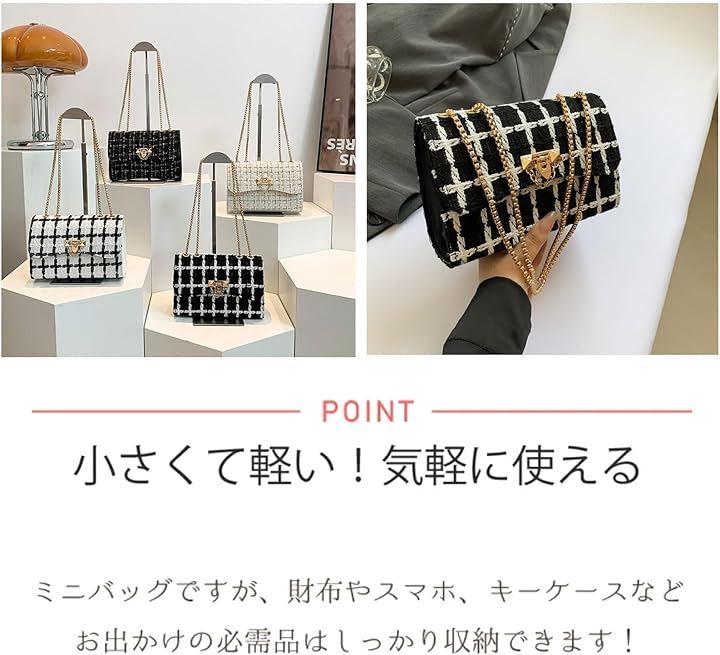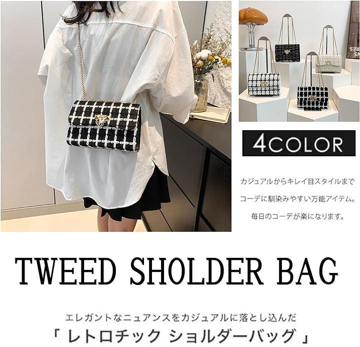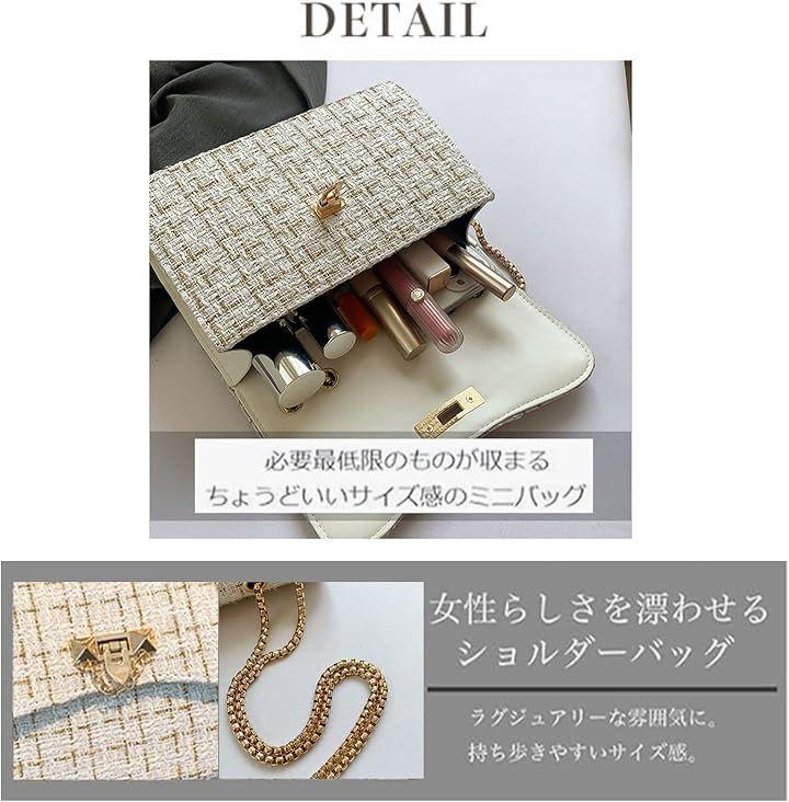 Mini shoulder bag, tweed, ladies, gold chain, crossbody, casual, adult, compact, stylish, party, 4 colors, bag, purse, sub-bag, high-end look, small, small, travel