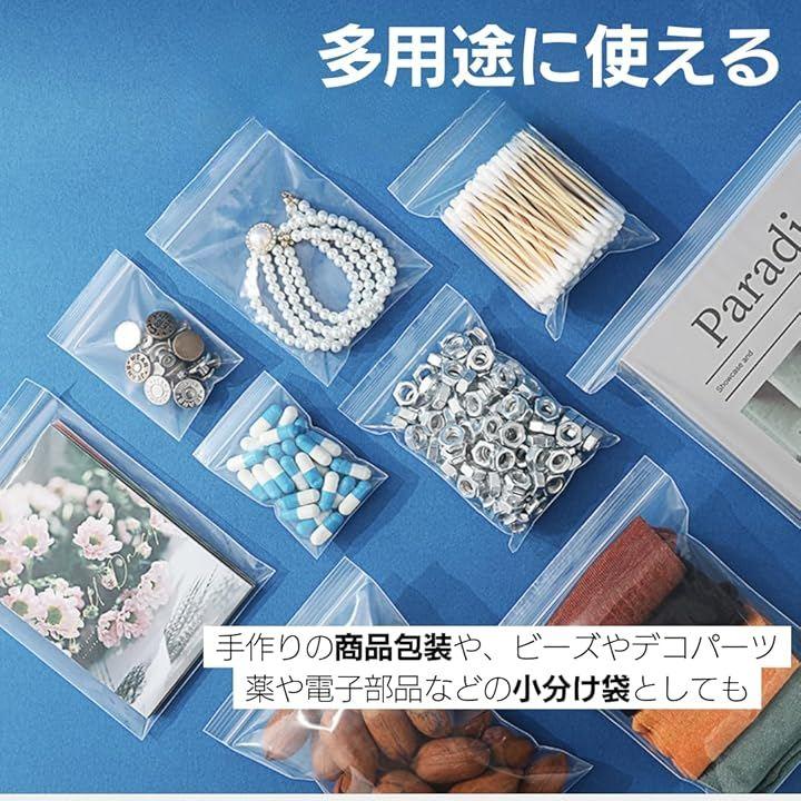 「密封チャック付き」一度閉じれば密封。透明なポリ袋は、防水性と密閉性に優れ、薬や電子部品などの小さなアイテムも安全に保管できます。