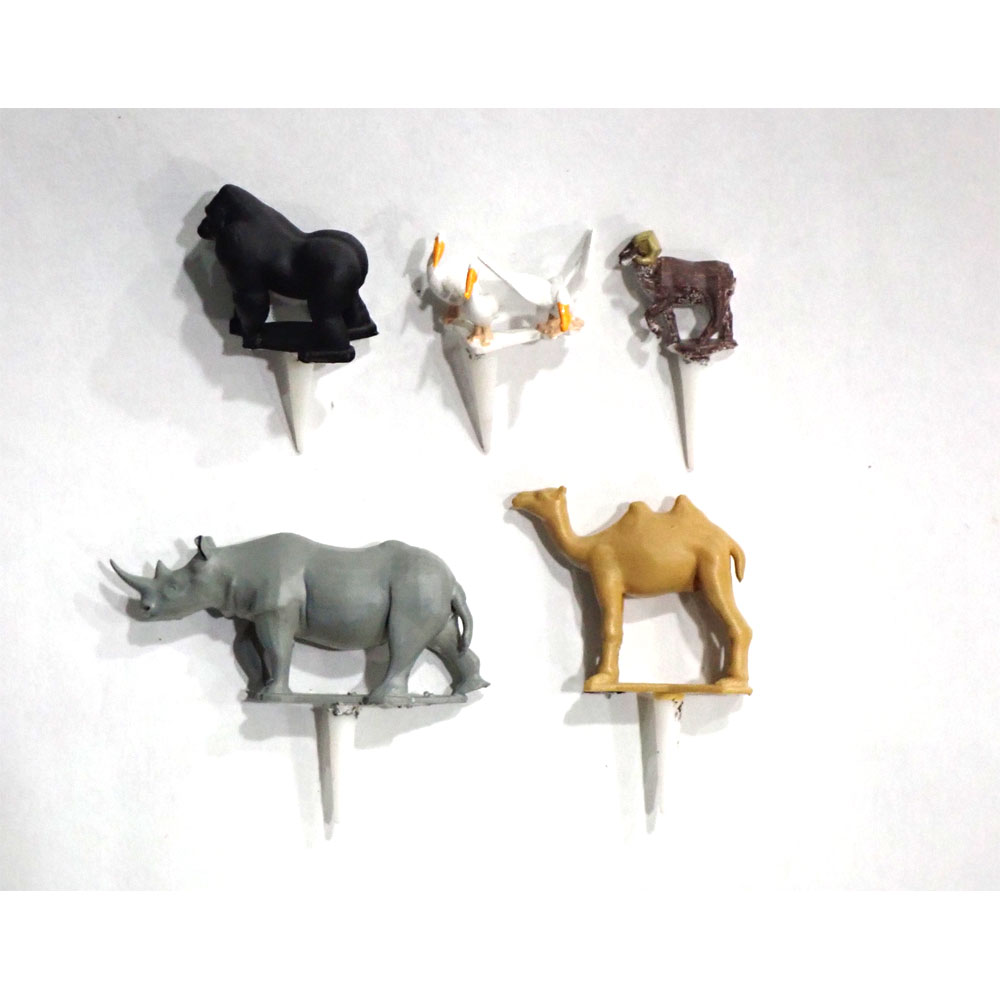 品番: GM6P内容物: 人形5種(サイ・ラクダ・ゴリラ・ビッグホーン、ペリカン)大きさ: 全長約1.5〜5cmピンの深さ: 約1.5cm材質: ABSライク樹脂(3Dプリンター成形)備考:人形の下部に地面刺し込み用のピンあり、不要な場合は切断可能