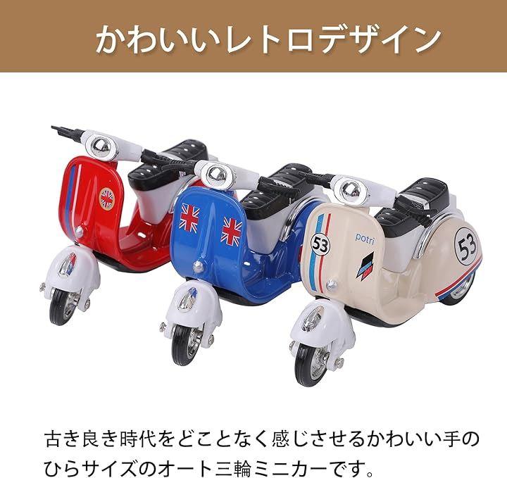 「かわいいレトロデザイン」古き良き時代をどことなく感じさせるかわいい手のひらサイズのオート三輪ミニカーです。