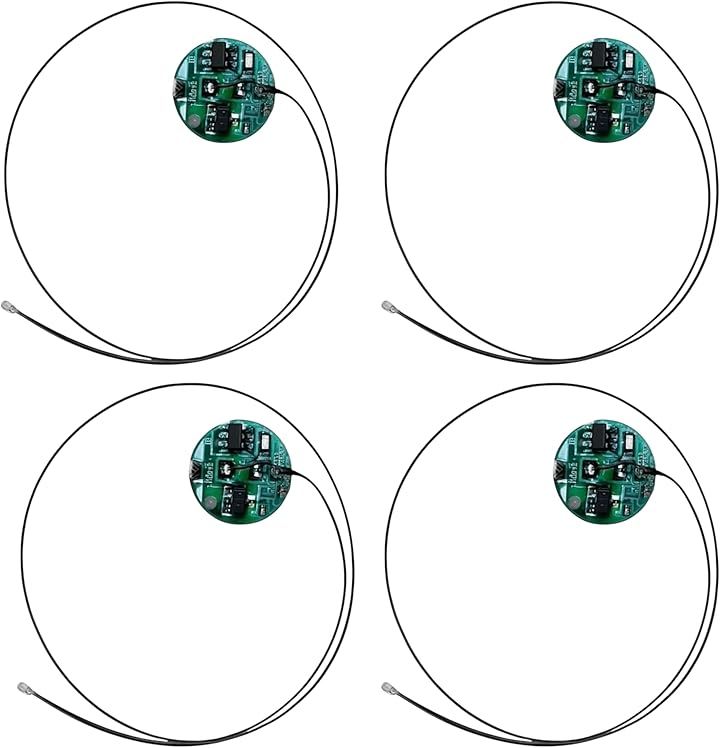 [商品詳細] ・リード線付き電飾 4個セット(個包装) ・基盤サイズ:直径 約11.2mm 厚さ 約5mm ・LEDサイズ:約 1.3x1.5mm ・リード線長さ:約19cm ・点灯モード:点灯/点滅/ゆっくり点滅 ・操作方法:磁気スイッチ式(磁石を近づけてON/モード切替/OFF) ・対応電池:CR927(別売り) *電池・磁石は付属していません(別途ご用意ください)。