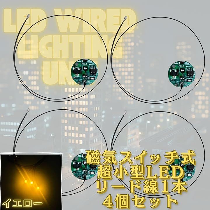 ・点灯:明るく安定した光で、ライト・内部発光・車両模型などに最適。 ・点滅:警告灯、サイレン、信号などの演出に。 ・ゆっくり点滅:呼吸するような柔らかい発光で、ロボット・フィギュア・ジオラマ演出にも好相性。 磁気スイッチ操作でモード切替できるため、 模型外側にスイッチを露出させる必要がなく、見た目を損ないません。