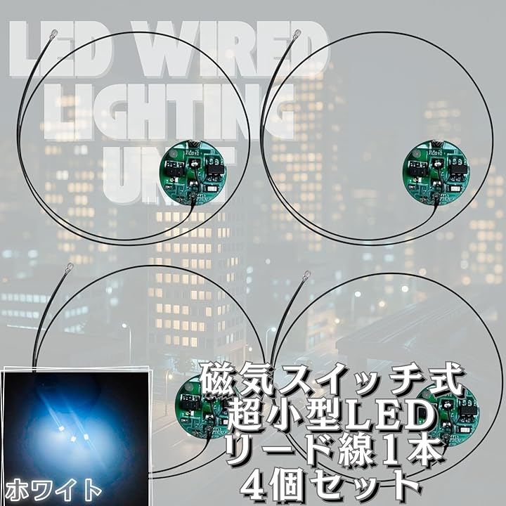 ・点灯:明るく安定した光で、ライト・内部発光・車両模型などに最適。 ・点滅:警告灯、サイレン、信号などの演出に。 ・ゆっくり点滅:呼吸するような柔らかい発光で、ロボット・フィギュア・ジオラマ演出にも好相性。 磁気スイッチ操作でモード切替できるため、 模型外側にスイッチを露出させる必要がなく、見た目を損ないません。