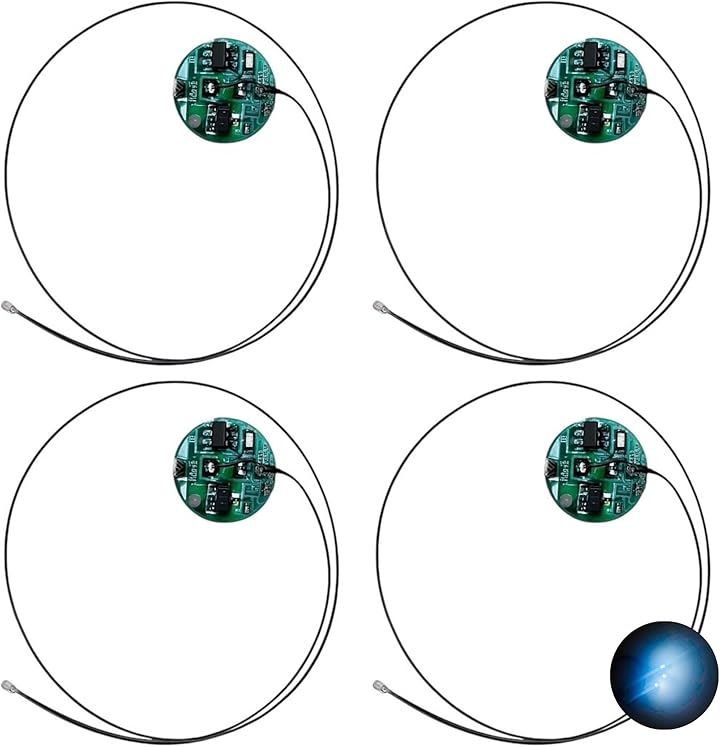 [商品詳細] ・リード線付き電飾 4個セット(個包装) ・基盤サイズ:直径 約11.2mm 厚さ 約5mm ・LEDサイズ:約 1.3x1.5mm ・リード線長さ:約19cm ・点灯モード:点灯/点滅/ゆっくり点滅 ・操作方法:磁気スイッチ式(磁石を近づけてON/モード切替/OFF) ・対応電池:CR927(別売り) *電池・磁石は付属していません(別途ご用意ください)。