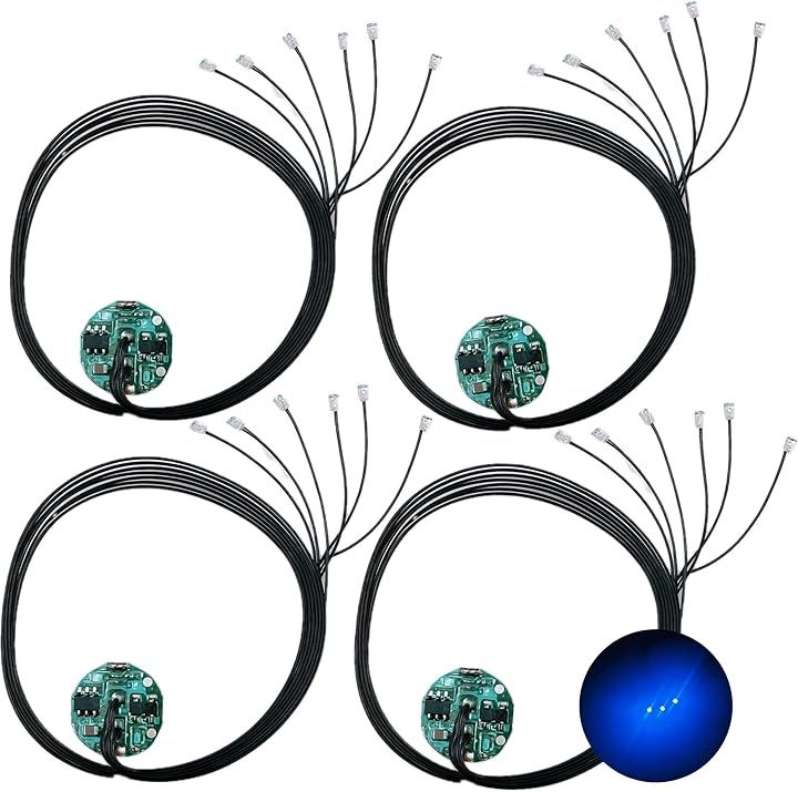 [商品詳細] ・リード線付き電飾 4個セット(個包装) ・基盤サイズ:直径 約11.2mm 厚さ 約5mm ・LEDサイズ:約 1.3x1.5mm ・リード線長さ:約19cm ・点灯モード:点灯/点滅/ゆっくり点滅 ・操作方法:磁気スイッチ式(磁石を近づけてON/モード切替/OFF) ・対応電池:CR927(別売り) *電池・磁石は付属していません。