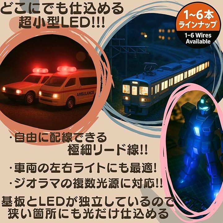 [極小LED・リード線付きで、どこにでも仕込める電飾ユニット] シリーズ最多の6本搭載モデル。