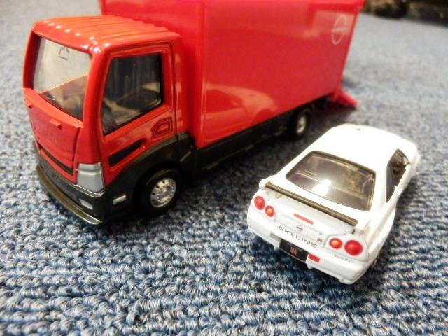 スケールサイズ 1/64日本製 トミカ製 ダイキャスト製ミニカー日産GTRは、ドアの開閉が可能です。積載車にGTRを積載可能です。