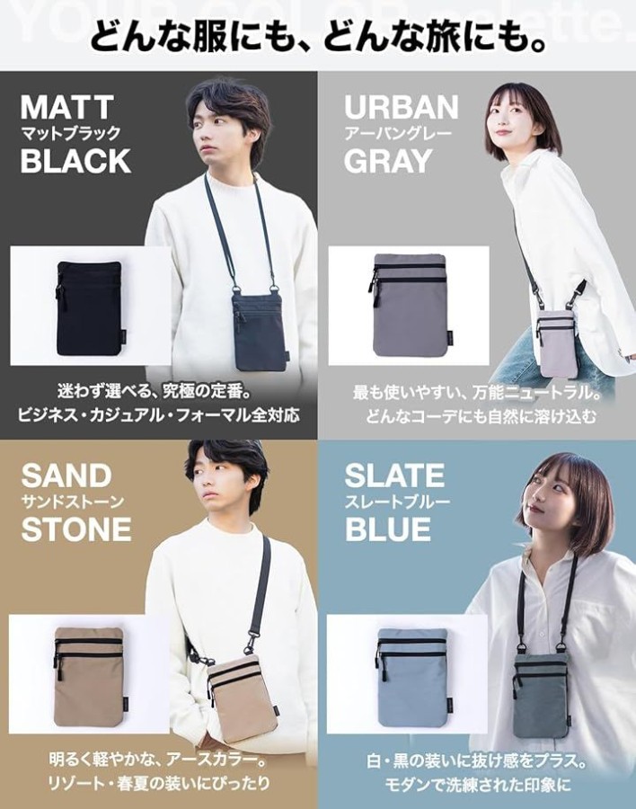 厚さも1~1.5cmの極薄設計で、ジャケットやシャツの下に隠して着用してもシルエットが崩れず、セキュリティ対策も。