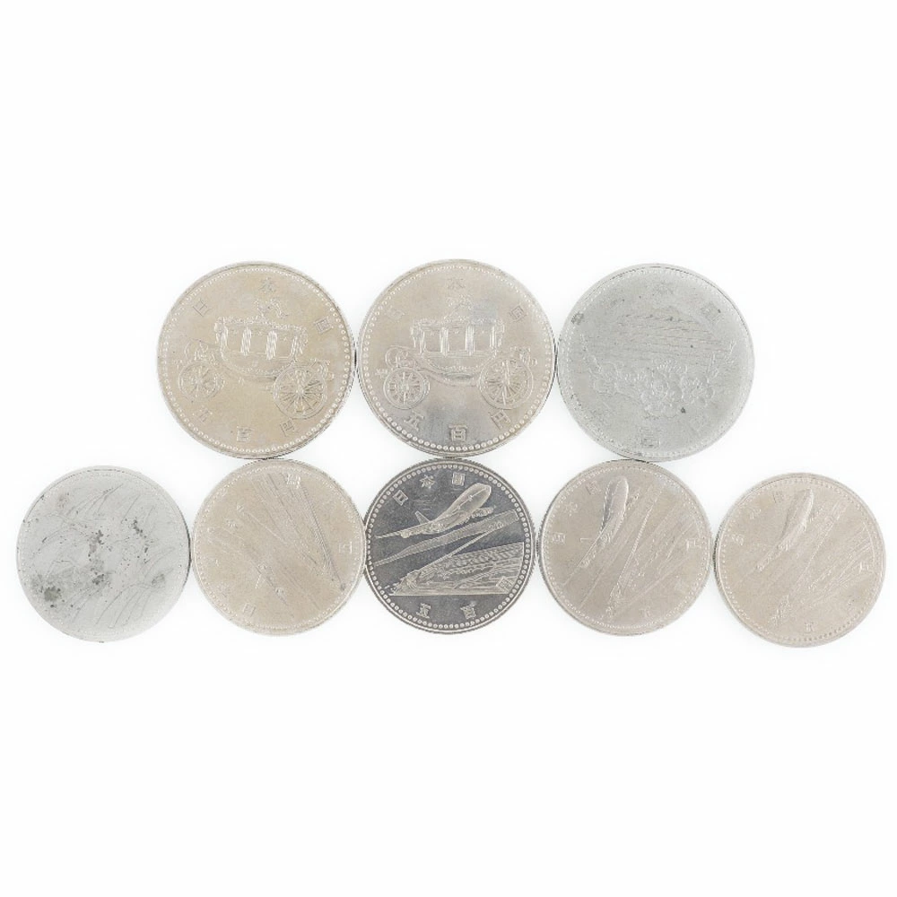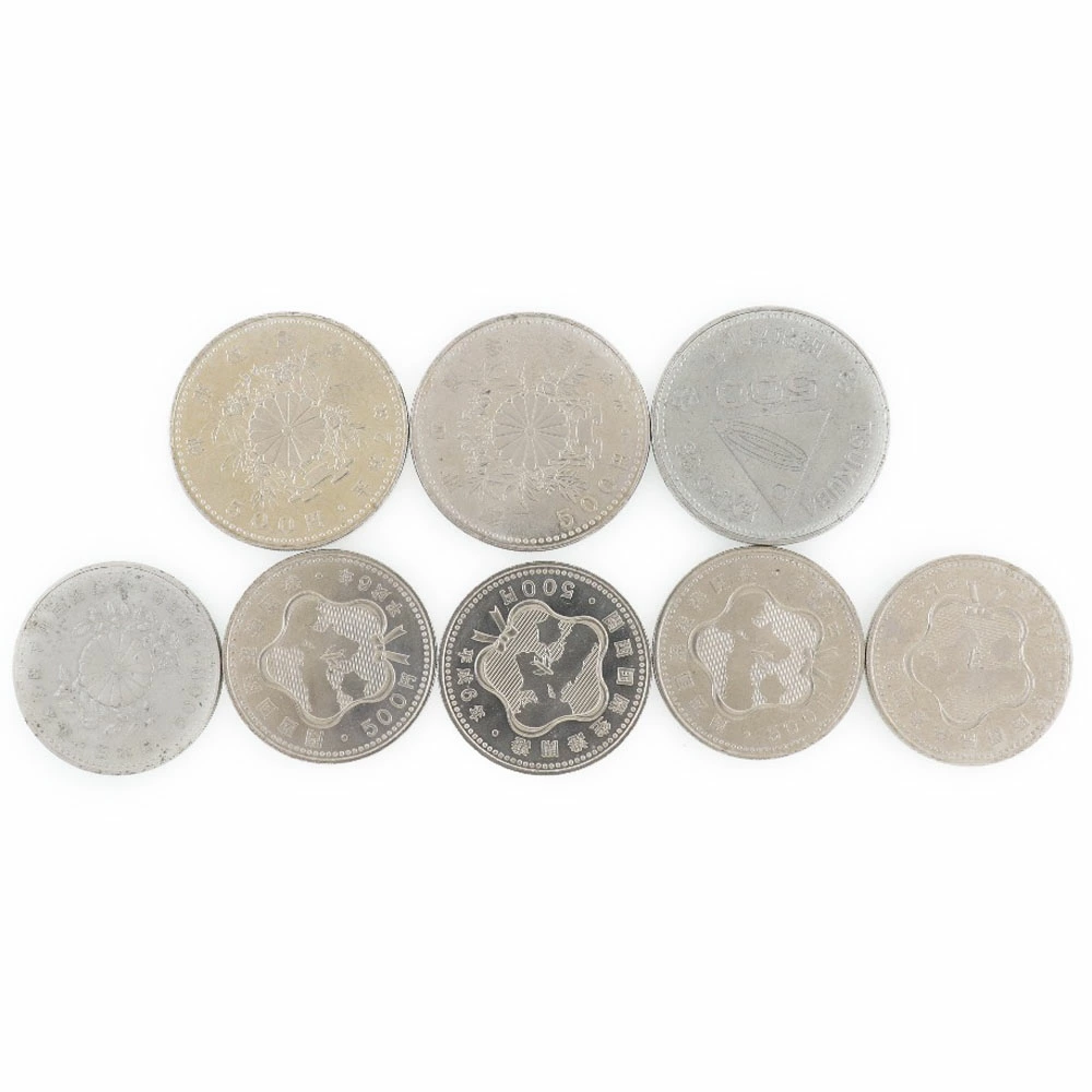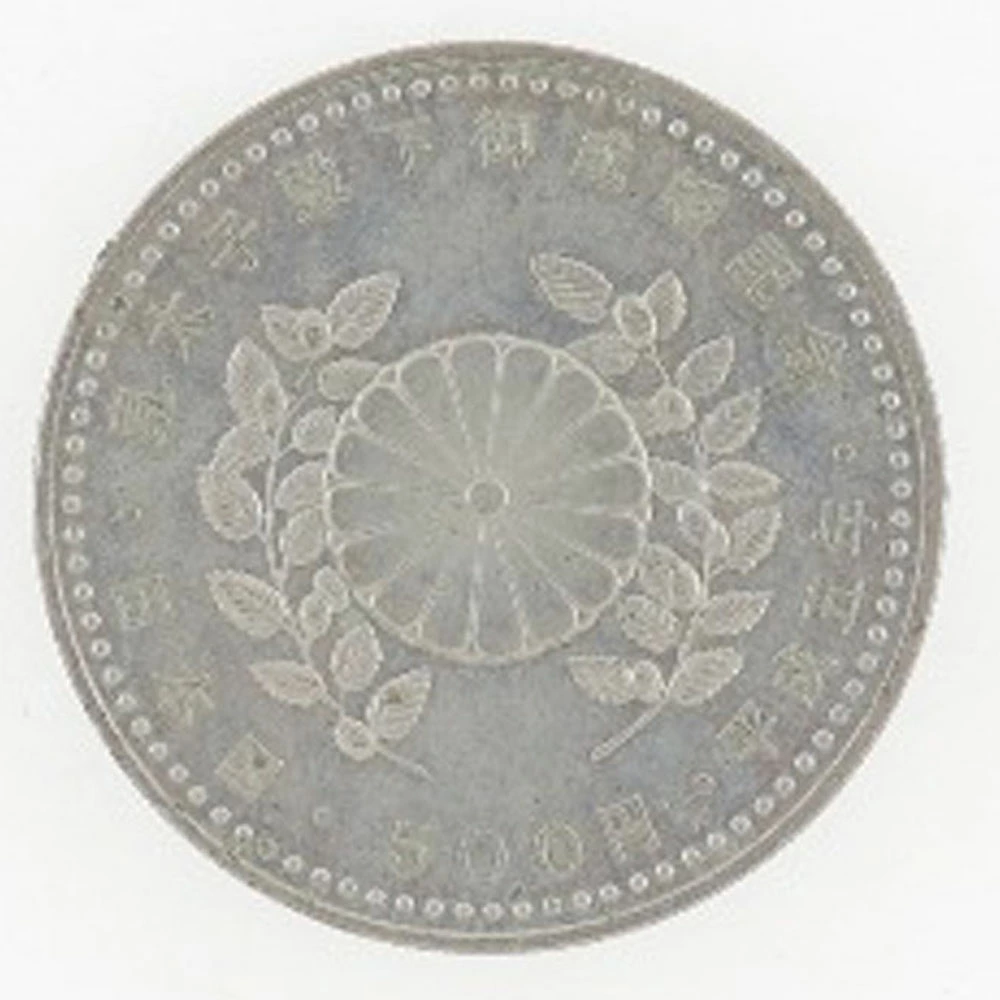 Ministry of Finance Commemorative 500 Yen Coins, Commemorating the Enthronement of His Imperial Highness the Crown Prince (Heisei), the Marriage of His Imperial Highness the Crown Prince, and the Opening of Kansai International Airport (EXPO85). Eight 500 Yen Commemorative Coins. Used. Grade A+.