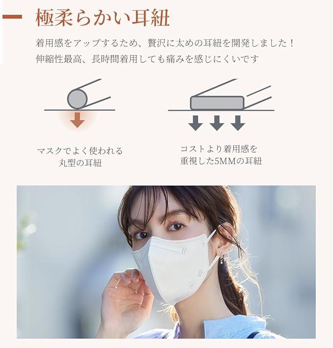 【柔軟性・高弾力耳紐】柔らかく伸縮性抜群な5mmの耳紐を使用し、弾力性が高く、鼻からあごまで顔を覆い、長時間の着用でも耳が痛くなりにくく、肌にも優しいです。