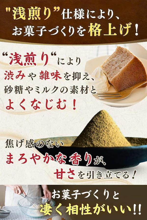 「ほろ苦い味わいと濃厚な旨みが絶妙」ほろ苦さとまろやかでコクのある香りのバランスがよく、味が濃いほうじ茶粉末に仕上がりました。