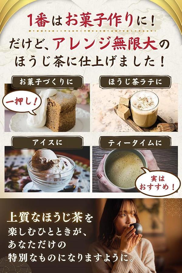 「ほうじ茶ラテやアイスにも最適」お湯に溶かしてティータイムを楽しんだり、お好みのアイスにかけて味わうのも生産農家イチオシの楽しみ方です。