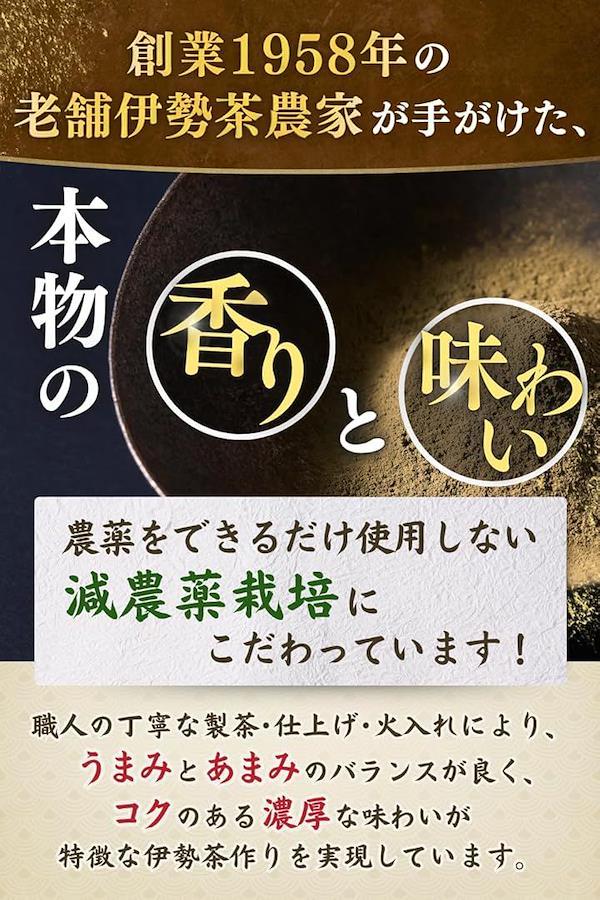 「創業昭和33年の老舗茶農家製造」創業から60年以上にわたる歴史を受け継ぐ茶農家が真心込めて作った、日本三代銘茶の1つとも呼ばれるブランド茶葉伊勢茶だけを使用している奇跡のほうじ茶です。