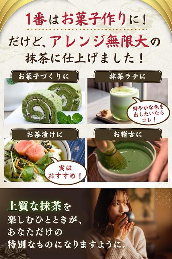 「お菓子づくりや料理にもおすすめ」美しい緑色と、コクのある濃い味わいがスイーツと相性抜群。
