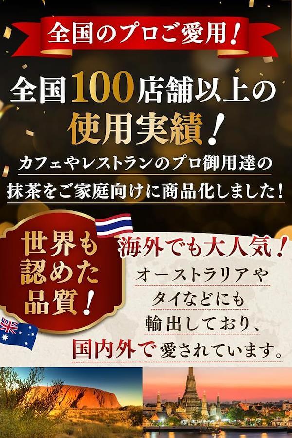 「世界も認めた抹茶」本商品と同じ原料の抹茶は、海外でも大人気であり、オーストラリアやインドネシアなど世界各国にも輸出しており、日本だけでなく世界中で愛されています。