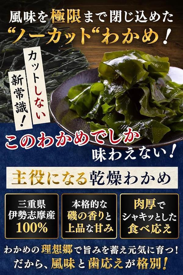 「風味と鮮度を極限まで閉じ込めた」カットをすることで、その工程時にワカメの旨みや香りが流れ出やすいことや、空気に触れる面を抑えるため、あえてカットしない”ノーカット”の乾燥ワカメにこだわりました。