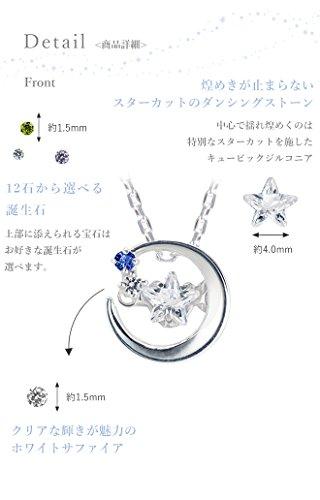 お好みの誕生石が選べる、今大人気のレディース用、三日月モチーフネックレス。最高級スワロフスキースターカットの星と神秘的な三日月の相性はバツグン!立体的な構造になっているため、正面からも斜めから見ても胸元を際立立てます。三日月の中央には動くたびにキラキラ煌めく、話題のダンシングストーンでも珍しい、スターカットのスワロフスキーキュービックジルコニアダンシングストーンを使用しております。眩い光に輝く人気のレディースネックレス。自分へのご褒美にも大切な方へのプレゼントにも大変喜ばれる商品です。本体 縦×横×厚み(mm) :約9.3×約9.3×約5.3シルバー/スターカット スワロフスキーキュービックジルコニア(4mm)/ホワイトサファイア/誕生石(1.5mm)重量(g):約1.7g チェーン :SVカットアズキチェーン 約40cm