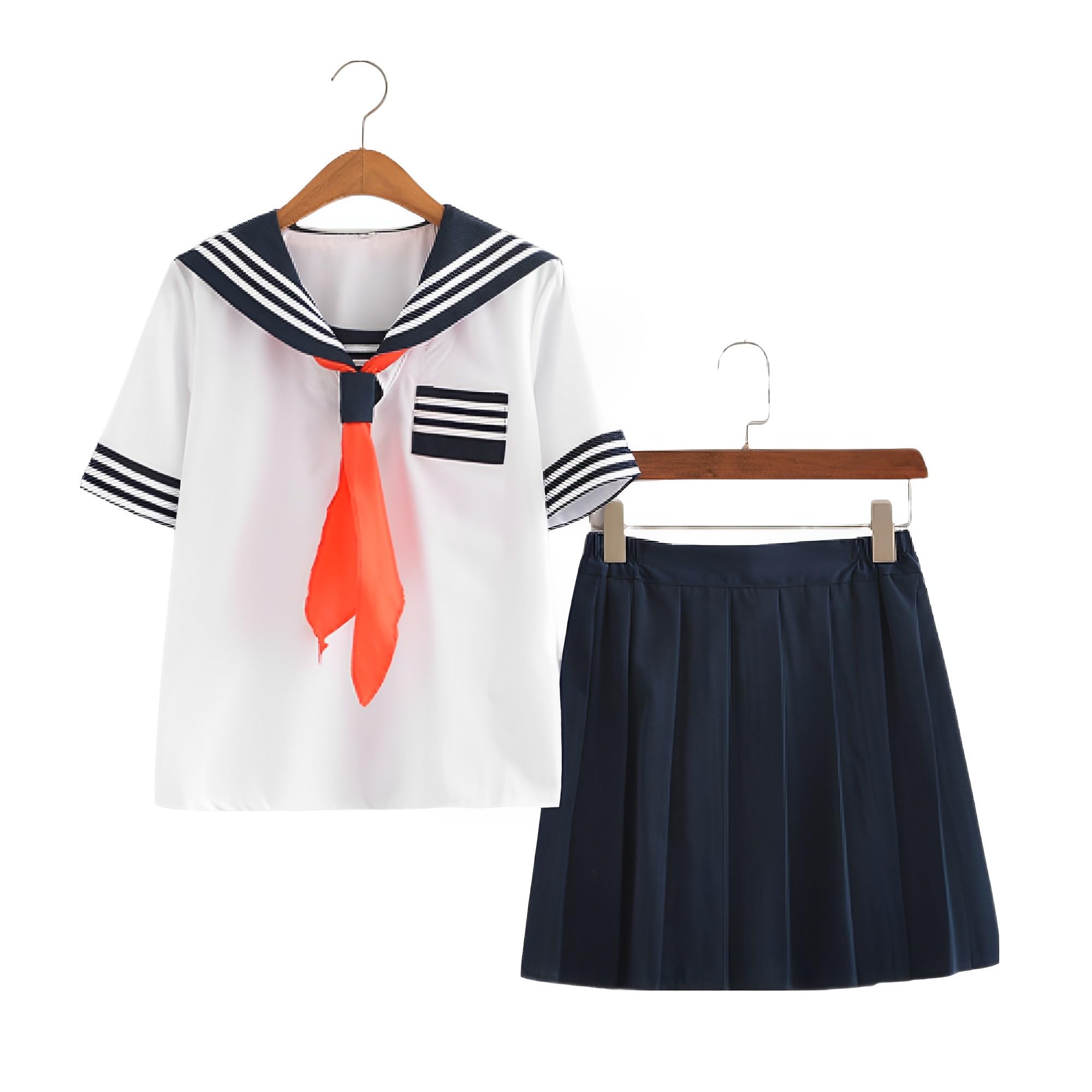 MIRIPARIS Sailor Uniform, Short Sleeves, "Pale First Love" Costume, Navy Blue with Red Scarf, XL Size