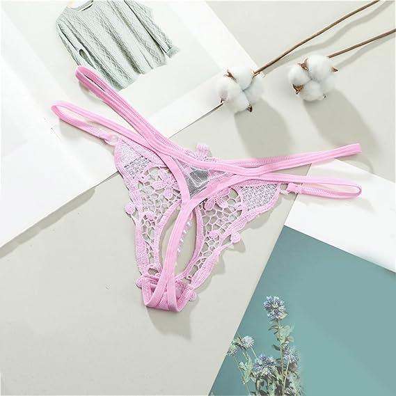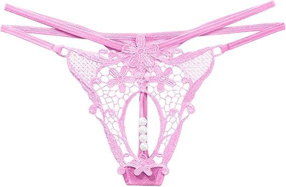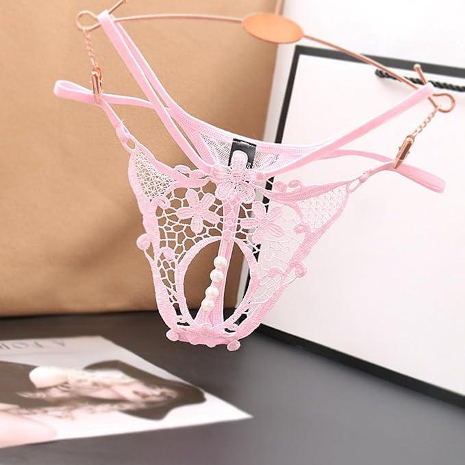mitetuboueki Sexy Embroidered T-Back Panties with Pearl Lingerie, Show-Off Panties, Women's Lace Panties, Panties, Extreme Holes