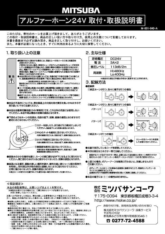 MITSUBA(ミツバサンコーワ) アルファーホーン24V [ホーン ]24V専用 MBW-3E11B