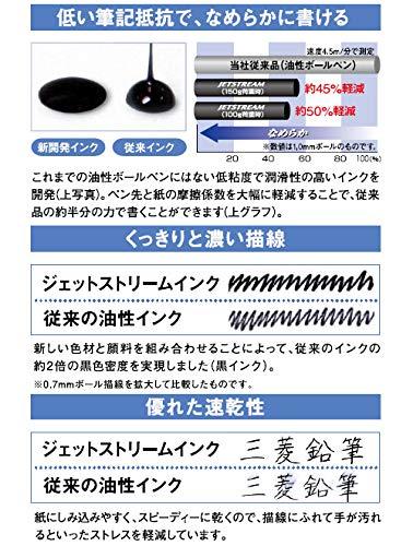 ジェットストリームは「クセになる、なめらかな書き味」という新しいカテゴリーの油性ボールペンで、筆記荷重、速度に関わらず低い筆記抵抗でなめらかに書け、濃くはっきりとした描線を表現でき、描線の乾燥性にも優れています。