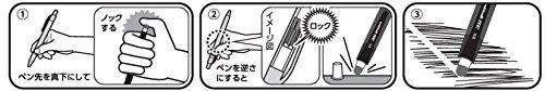 ●新開発「ロック機構」搭載の専用消し具で消しやすい。筆記時は一般的なノック式ボールペンと同様に、ペン先を下に向けるとスムースにノックが可能です。消去する際は軸を逆さにするだけで内蔵されている「ロック機構」が作動し、消し具を固定するのでしっかりと消すことができます。