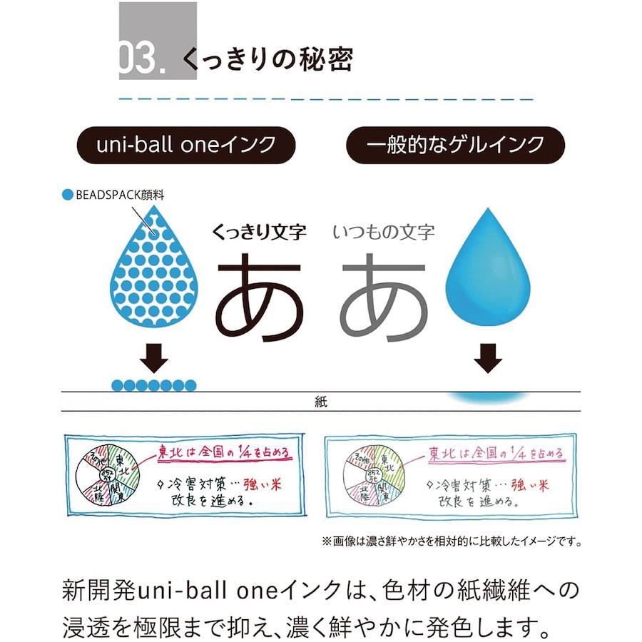 替芯はuni-ball oneシリーズ共通のUMR-38S/UMR-05Sを搭載。自分好みの1本をぜひ探してみてください。