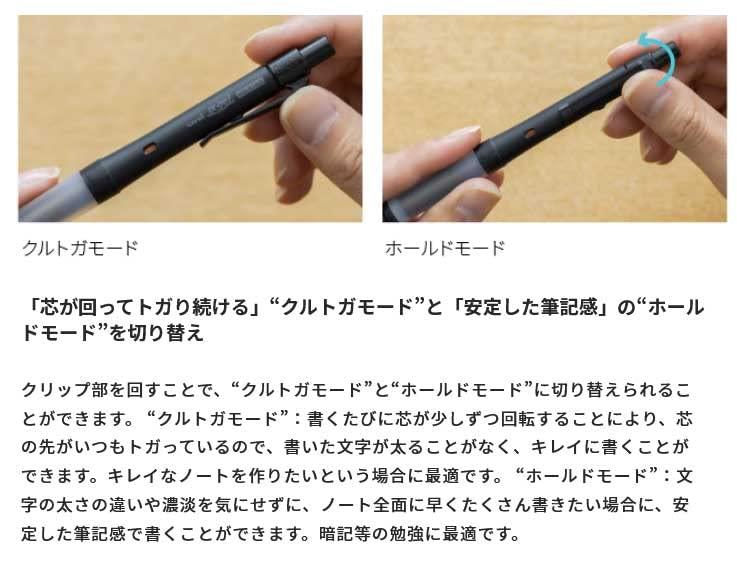 【特長】“クルトガモード”と“ホールドモード”を切り替え、使用シーンに合わせて使える。