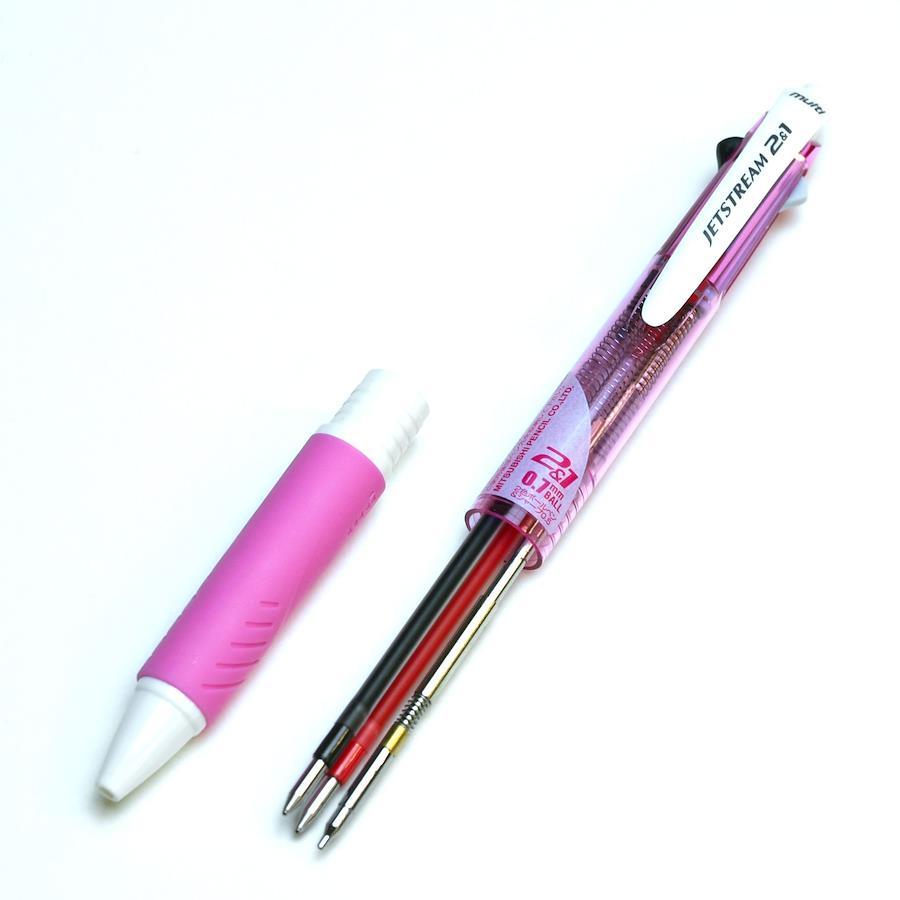 【超・低摩擦ジェットストリームインク搭載! 】黒・赤の0.7mm油性ボールペンと0.5mmシャープペンが一緒になった多機能ペンです。世界初の画期的なインクで、低い筆記抵抗でクセになるなめらかな書き味を実現しました。またインクの乾きがスピーディーなので、手が汚れるストレスも軽減します。ツインボール機構によりインクの逆流も防ぎ、ペン先からのインク漏れを防ぐためのスプリングチップを内蔵しています。