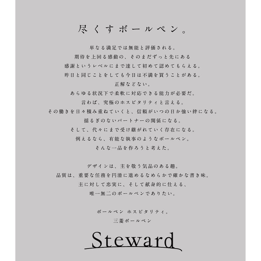 【商品説明】JETSTREAMインクによるなめらかな書き味という有能な「機能」洗練された軸デザインによる「品格」親から子へ代々受け継いで使いたくなる「品質」これらを兼ね揃えた、まるで持ち主に対して真摯に仕える、有能な「執事」のようなボールペン。ブランド名である「Steward」は有能な執事を意味しています。