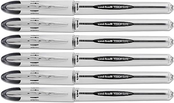通常1-5営業日で発送:三菱鉛筆 uniball Vision エリートスティック ボールドポイント ローラーボール ブラックインクペン6本 (61231) (ne k)