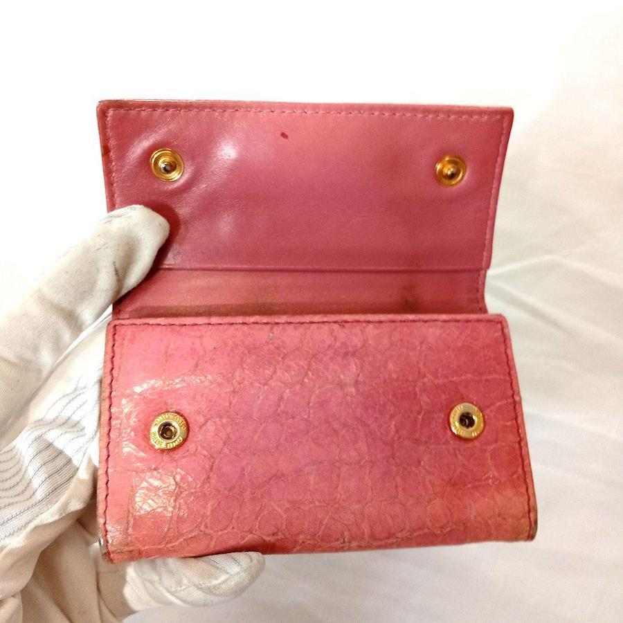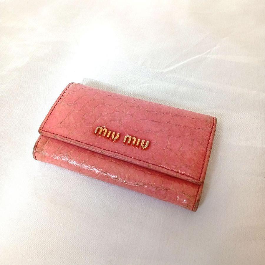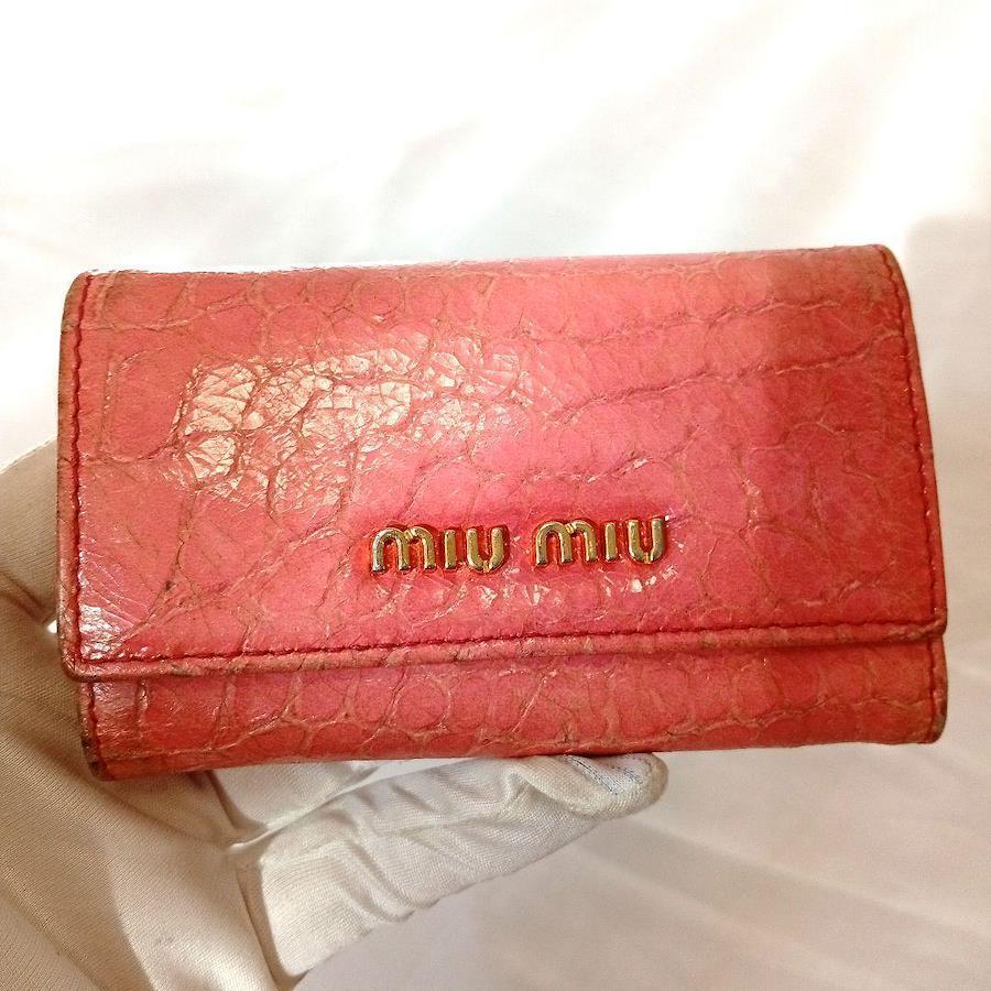 Miu Miu 6-ring key ring in pink crocodile leather, women's brand