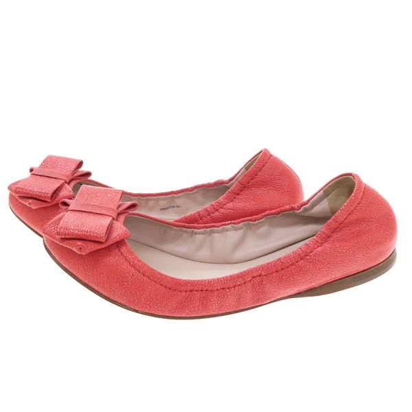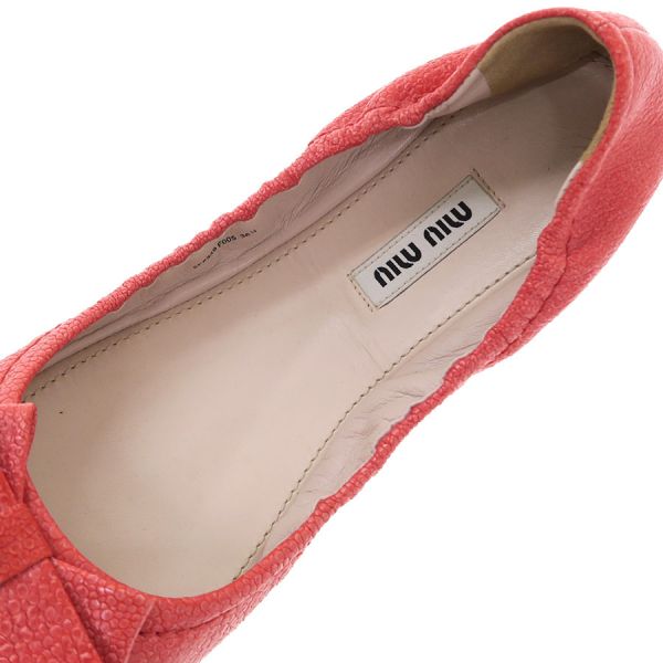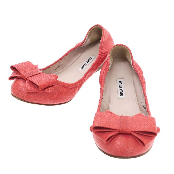 ■採寸#361/2 日本サイズ約23.5cm 全長24cm 甲幅7.5cm ヒール高1cm■コメントMIU MIUからオレンジ色に近い赤のバレーシューズが入荷しました。両足つま先にスレが見受けられ両足踵部にもスレの様な白い小さなダメージが見られます。バレーシューズはフィット感があってとても履きやすいです。目立つ程のダメージではないのでおススメです。お問い合わせください。