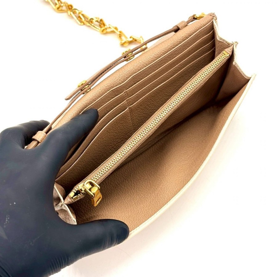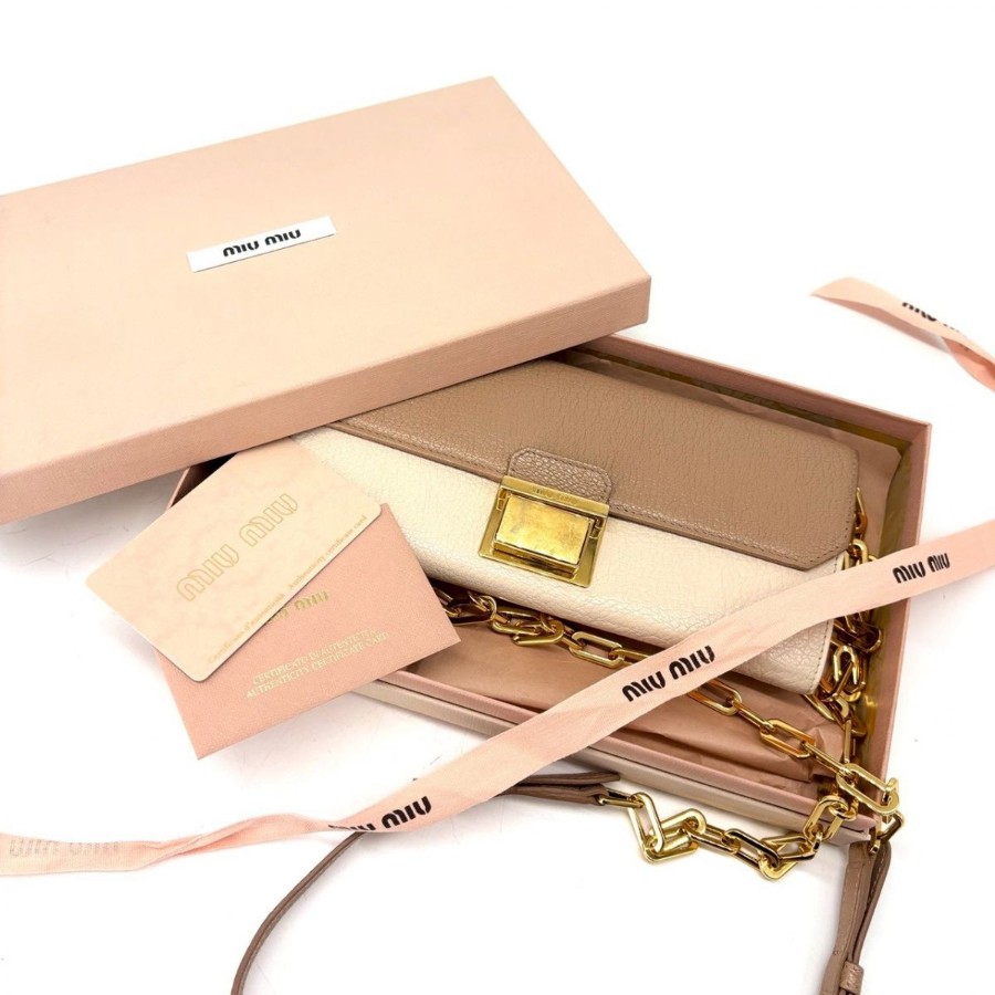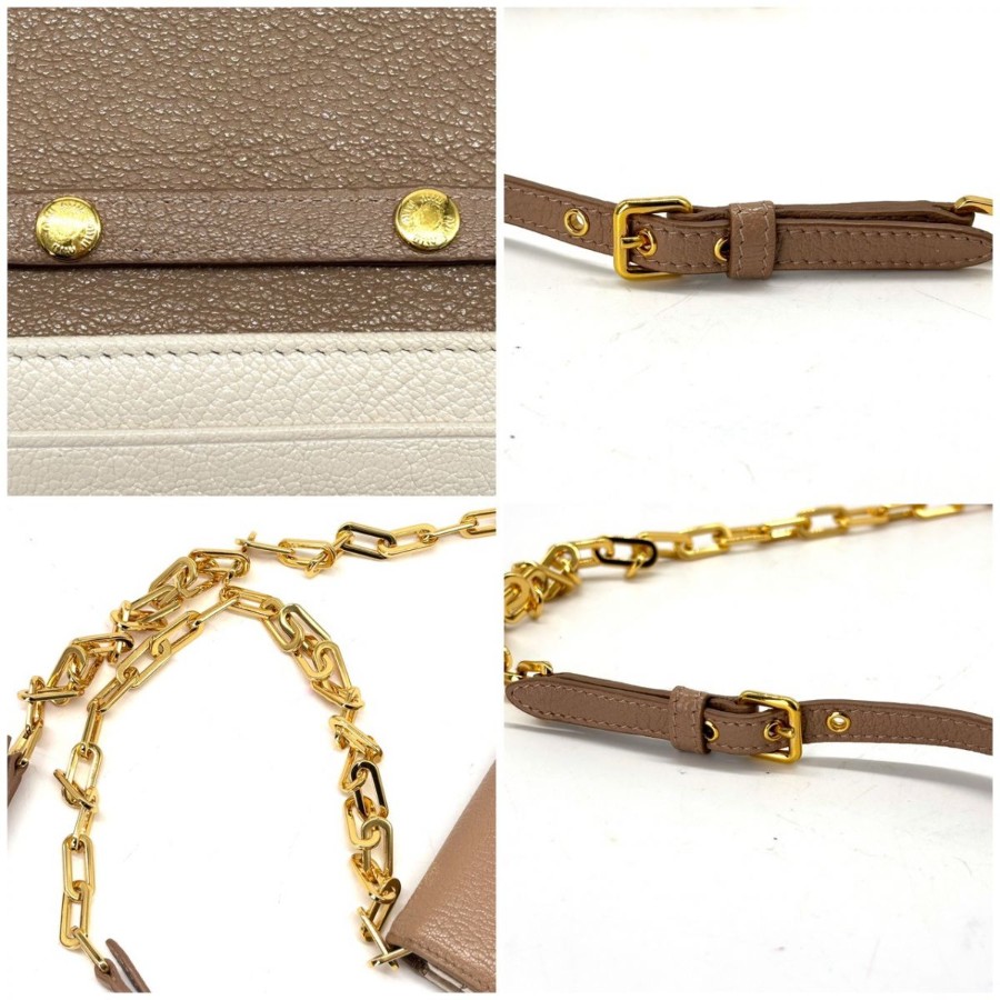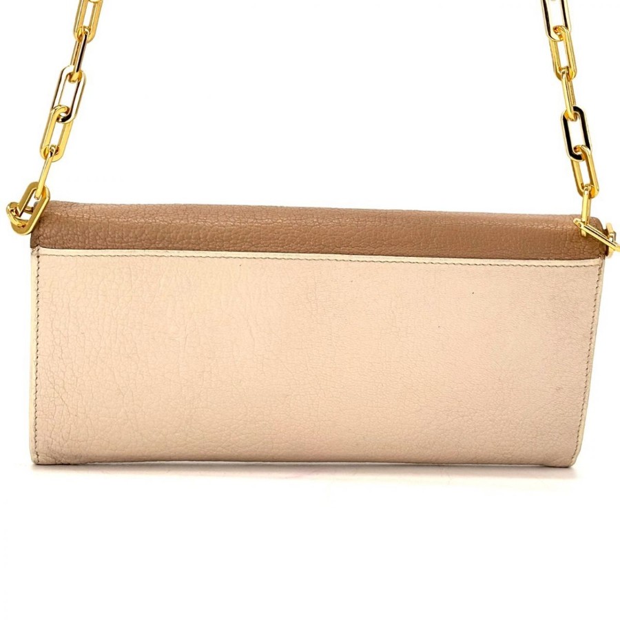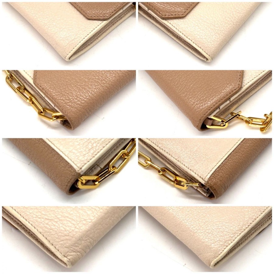 【商品説明】・柔らかなバイカラーレザーに、ゴールドチェーンが映える一品。クラシック回帰の流れに寄り添い、ミニバッグ感覚で持てる長財布としても活躍。キャッシュレス時代にフィットし、身軽に出かけたい日やカフェ時間にも美しく馴染みます。