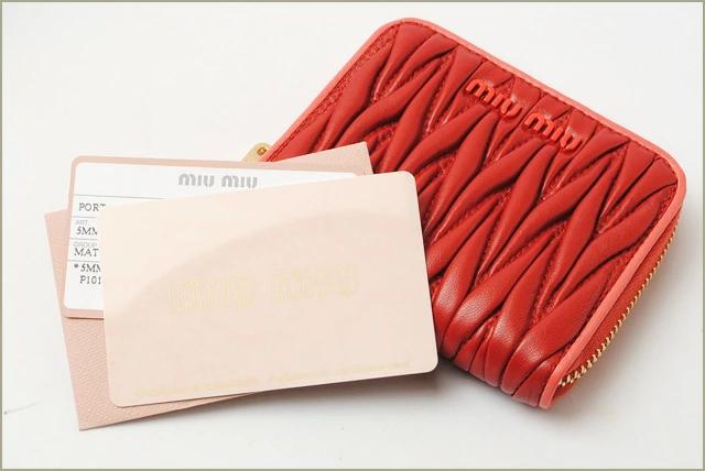 ミュウミュウ コインケース/カードケースmiumiu MADRAS/マドラスレザー FUOCO/CORALLO レッド/コーラル 5MM268